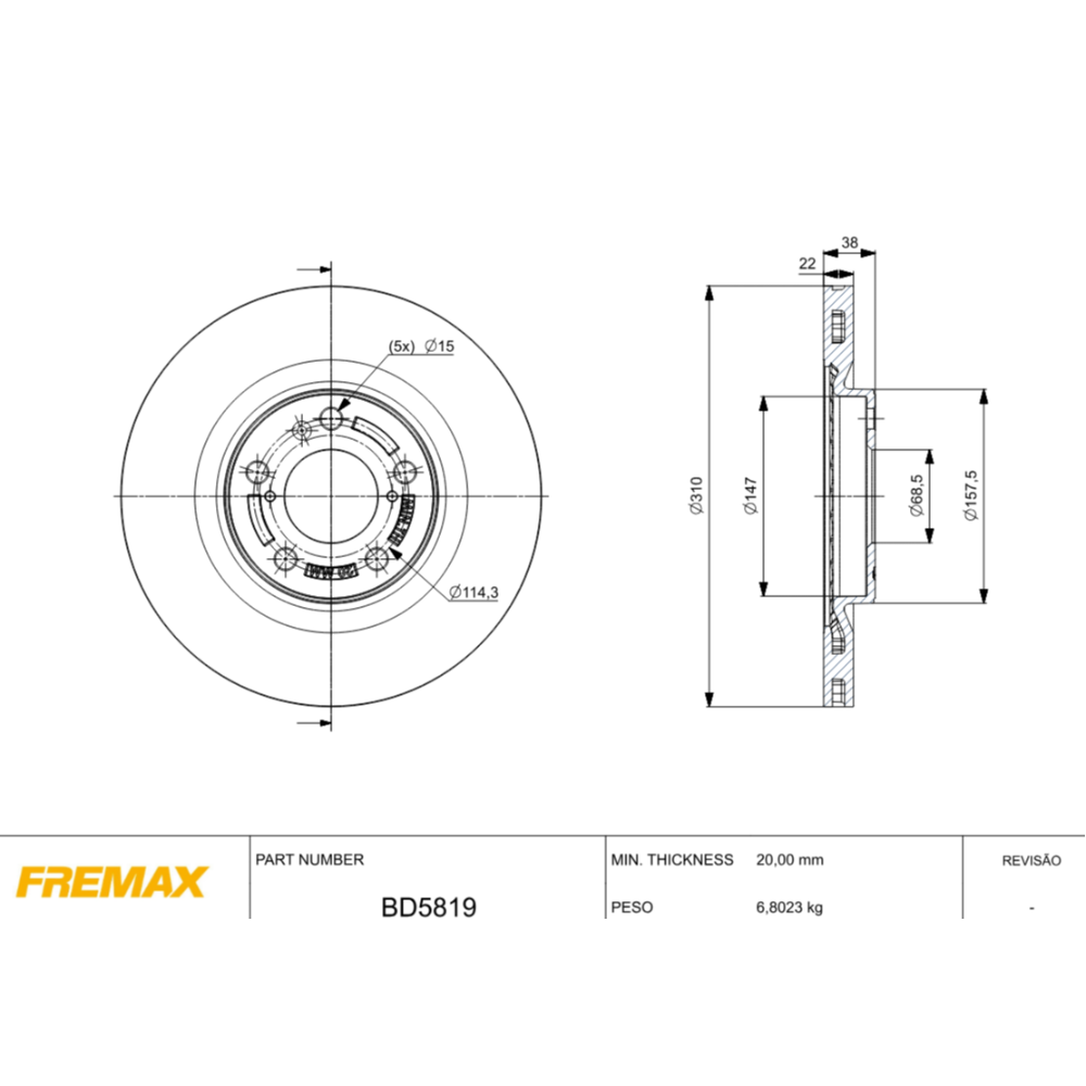 DISCO DE FRENO VENTILADO DELANTERO FREMAX - BD5819