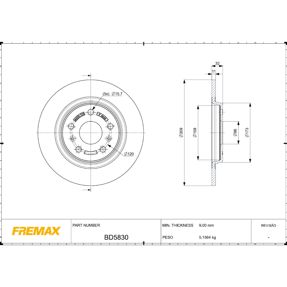 DISCO DE FREIO SOLIDO TRASEIRO FREMAX - BD5830