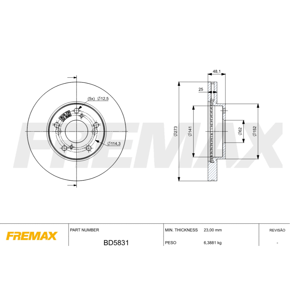 DISCO DE FREIO VENTILADO DIANTEIRO FREMAX - BD5831