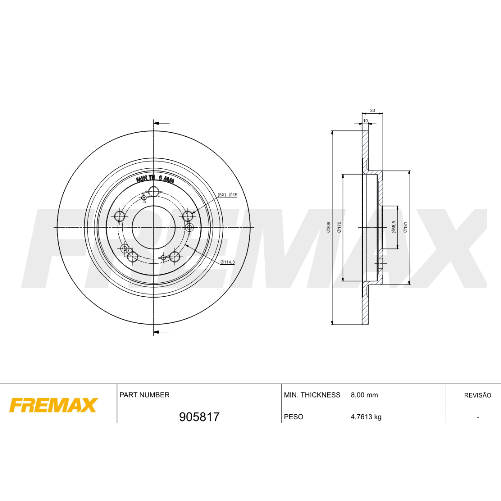DISCO DE FREIO SOLIDO TRASEIRO FREMAX - BD5817