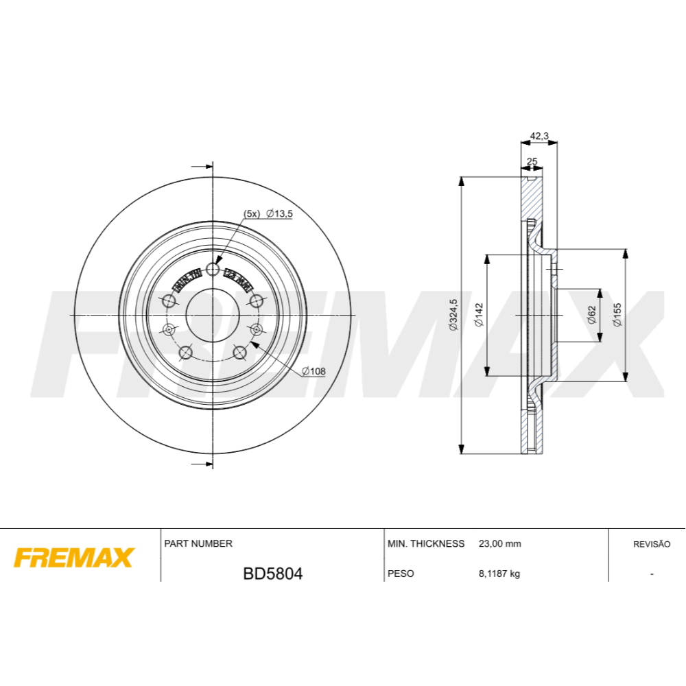 DISCO DE FREIO VENTILADO DIANTEIRO FREMAX - BD5804
