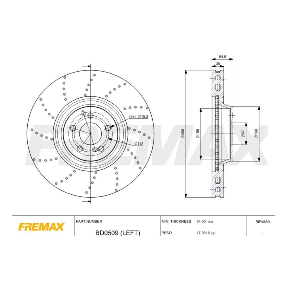 DISCO DE FREIO VENTILADO DIANTEIRO FREMAX - BD0509